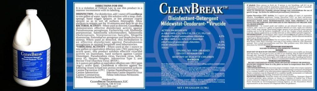 CleanBreak Multi-Purpose Disinfectant is designed for the toughest disinfecting challenges involving animal facilities, on both porous and non-porous surfaces. Not only does it disinfect, but acts as a detergent, mildew-stat, deodorant, antibacterial and virucide! Its concentrated formula makes for a very economical product. Everyone appreciates a clean and healthy environment when at the gym, store, restaurant, hotel, work, etc. CleanBreak Technology has created a complete yet simple and economical system of products to make it easy to keep your facilities clean and disinfected.