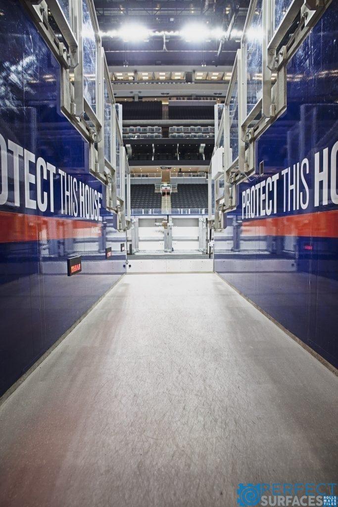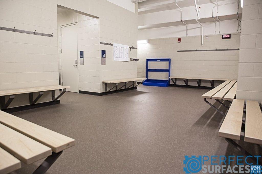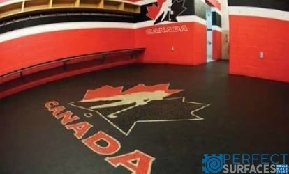 Sportfloor ReAction tiles and rolls are engineered specifically for durability, safety and to handle abuse from skate blades. The dual layer vulcanized construction creates a non-porous, easy to clean and easy to maintain floor covering for any ice arena. Using both pre- and post-consumer recycled materials in the manufacturing process, ReAction contributes to LEED points. Engineered for durability and versatility, ReAction performs well under the abuse of weights, skates, cleats, and other heavy equipment. The surface finish does not require waxes or finishes.