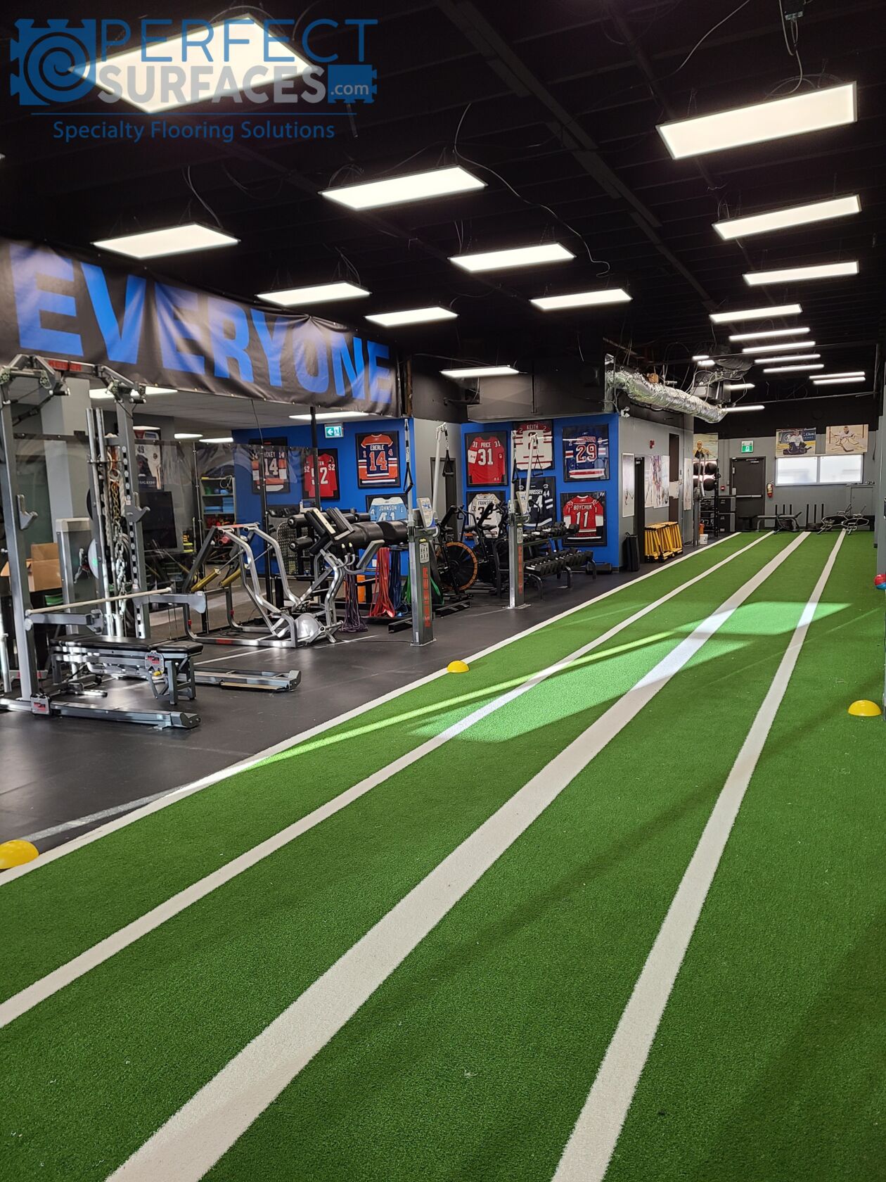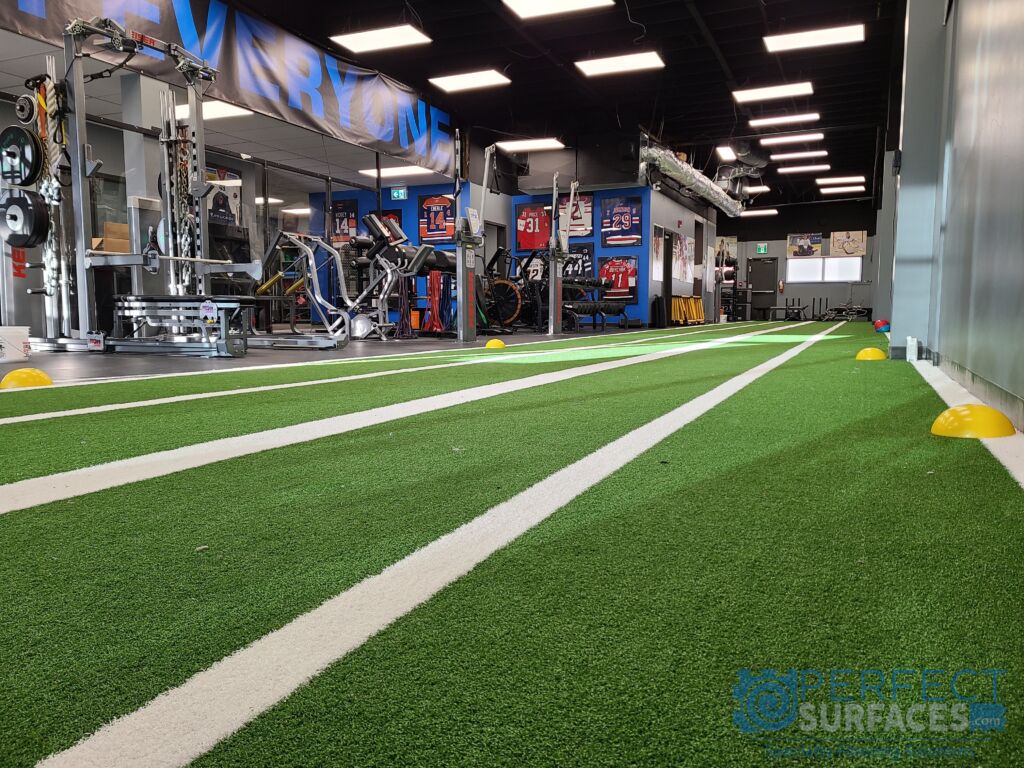 While GatorFIT® Sprint turf is traditionally used in sport and fitness conditioning centres, other common applications include specialty training turf, agility turf, track & field, and much more. The two prefabricated lanes on each 6’-wide section also make it the turf of choice for many specific applications such as artificial turf sprint lanes, synthetic turf sled push lane, or athletic turf running lane. Please note, GatorFIT® Sprint artificial turf rolls are produced in 6’ widths and are available in a minimum of 10’ length.