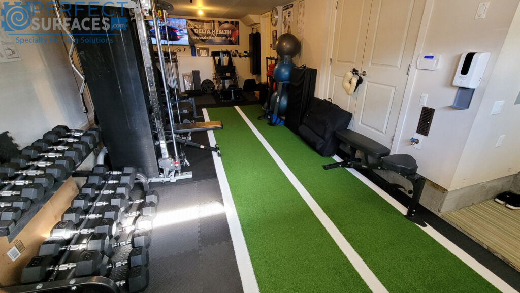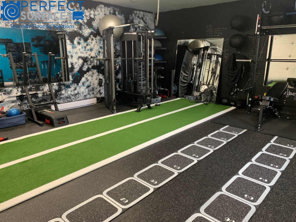 Whether you push your way to success behind a sled or sprinting on a track, GatorFIT® Sprint turf is the optimal artificial athletic turf for any agility or specialized training. With two prefabricated lanes highlighted by white lines running the length of each 6’-wide turf roll, GatorFIT® Sprint synthetic turf is perfect for any athlete looking to take their performance to the next level with laned drills. Low maintenance GatorFIT® Sled indoor turf fields require no crumb rubber or sand infill, eliminating the mess of traditional infilled synthetic grass fields; and since there is no infill, GatorFIT® Sprint & Sled indoor turf flooring can be installed permanently or as a removable option.