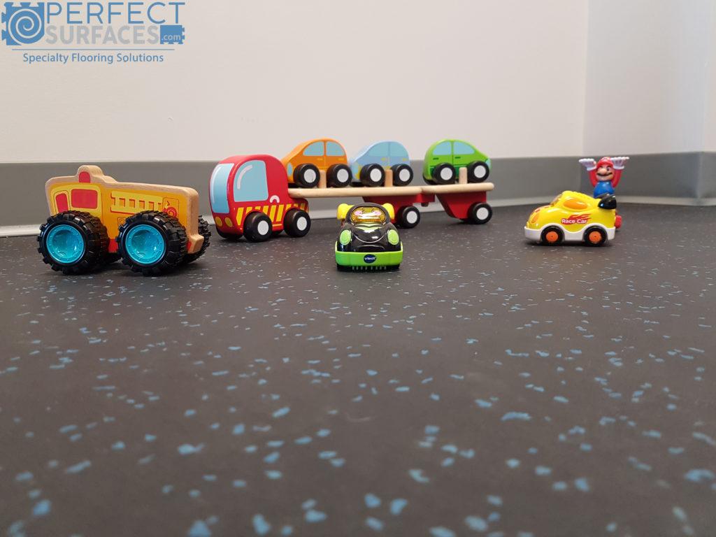 Ideal applications for PlaySafe PRIME rubber play mats include commercial daycare flooring, residential playroom flooring, indoor play spaces, indoor play place floors, day home kid-friendly matting, residential romper room flooring, or anywhere else you need a comfortable, durable, slip resistant space.