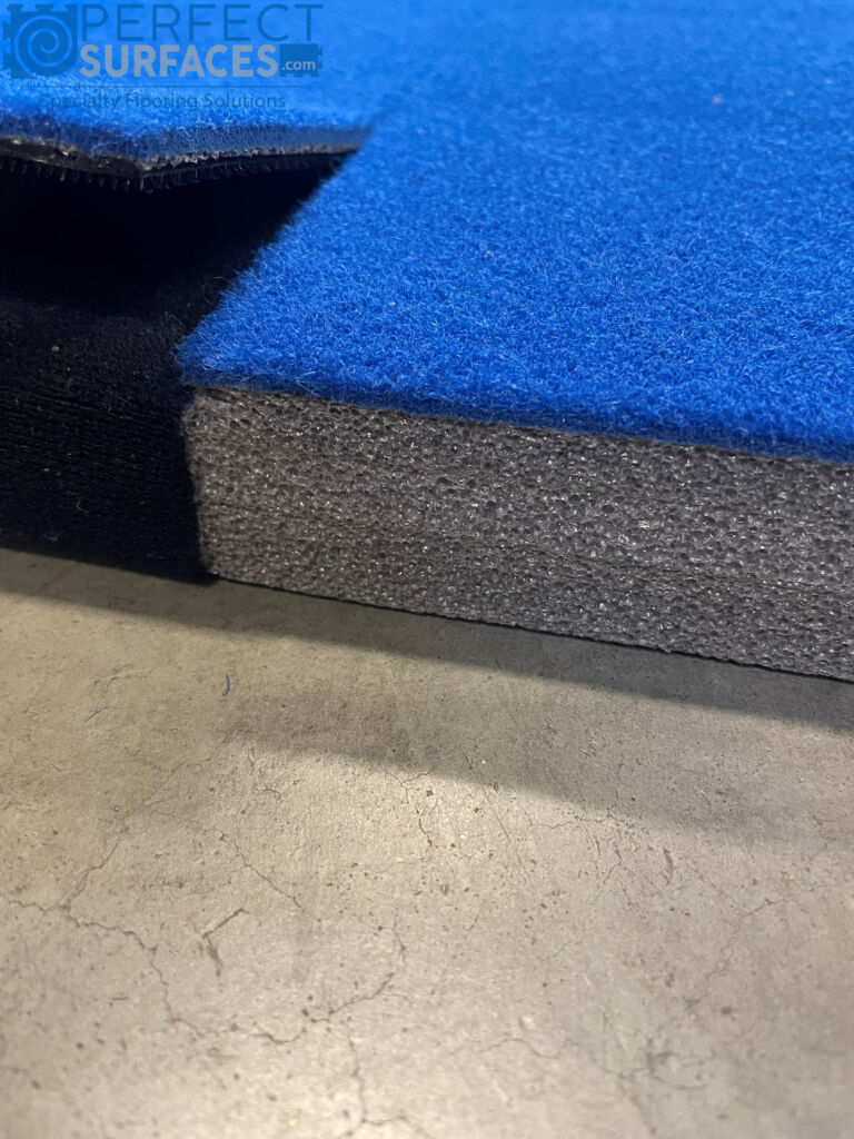 Versatile enough to be used in a variety of residential and commercial gymnastic applications, RivalMATS carpet top foam matting makes a great surface for competition gymnastics matting, gymnastics practice mats, college competition matting, home workout gymnastic mat, stretching mat, carpeted yoga mat, tumbling mat, cheer mat, recreational gymnastics mat, acrobatic foam matting, artistic gymnastic matting, rhythmic gymnastics mats, baton foam mats, parkour mats or anywhere that a durable, safe and attractive carpet bonded foam mat may be required.
