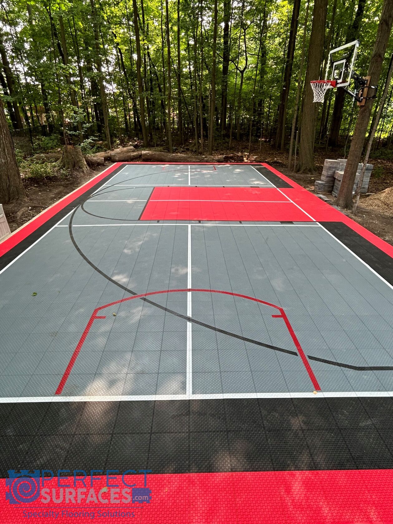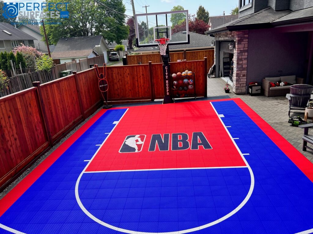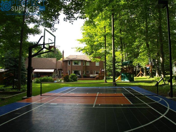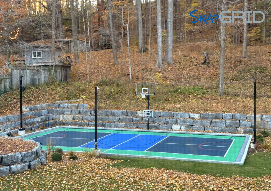 SnapGRID® LX2 residential basketball court tiles are available in a variety of colours to create multiple designs for your outdoor court or indoor sports floor. SnapGRID® LX2 sport courts provide exceptional performance and ball bounce mechanics for basketball, hockey, volleyball, tennis, badminton, pickleball, or any other sport that requires a court playing surface. SnapGRID® LX2 boasts a unique interlocking technology, making it extremely easy to install- even the most novice DIYer can feel confident installing their own SnapGRID® LX2 backyard sport court.