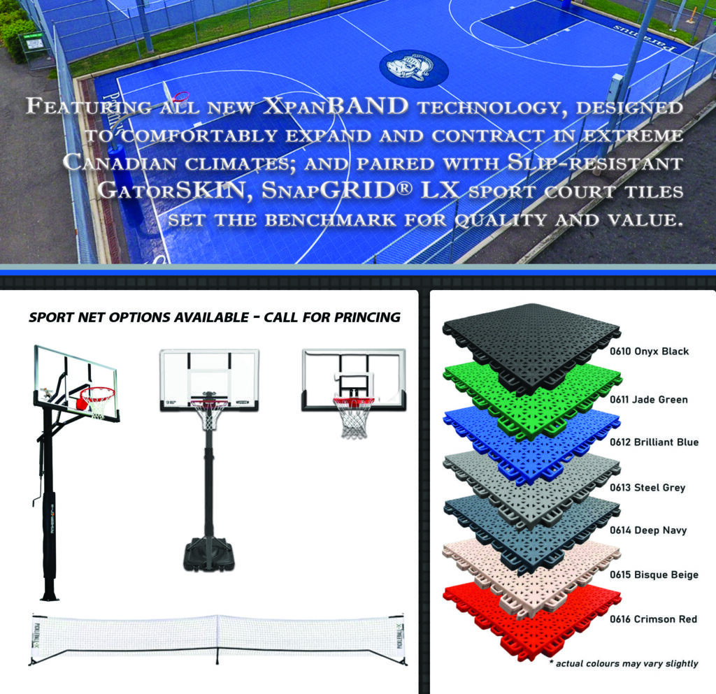 Self-draining SnapGRID® LX2 sports court tile is the modular court industry’s newest and most technologically advanced sport tile on the market. Its unique XpanBAND interlocking technology, built for Canadian climates, allows the outdoor sports tiles to expand and contract with extreme temperature shifts in Canadian weather, eliminating the issues that come with traditional sport court tiles. SnapGRID® LX2 interlocking sport court tiles also minimize the risk of injury due slips and trips that are typical of most interlocking sports courts, thanks to our exclusive GatorSKIN surface texture for added traction. Please note that the new LX2 colour options feature an interlocking system that is not compatible with the traditional LX tiles and are not intended to be used together.