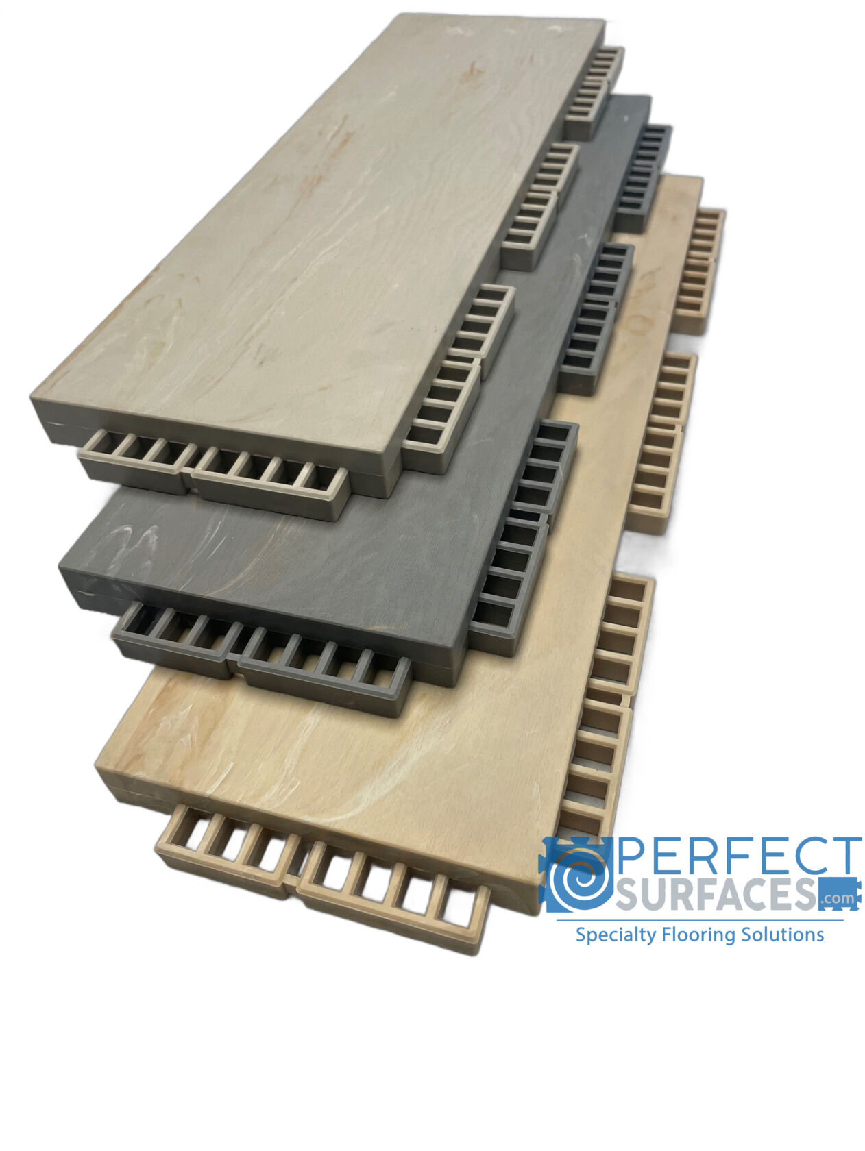 Providing consistent ball bounce and a slip-resistant surface, versatile SnapGRID® WP rubber wood-look planks create a high-performance sport court suitable for everything from basketball to pickleball, hockey to volleyball and a variety of other athletic activities. With significantly greater shock absorbency than asphalt or concrete, forgiving SnapGRID® WP rubber court tiles help to cushion athlete’s joints from high-impact sports, reducing the risk of impact-related injury.