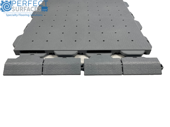 SnapGRID® XXL edge pieces provide a professionally finished look and allow for full accessibility to your SnapGRID® XXL flooring. Transition edges eliminate the risk of trips and falls, and are designed for indoor and outdoor use for a smooth transition from SnapGRID® XXL interlocking tiles to ground level. SnapGRID® XXL transition edge pieces are 30mm (1-3/16") thick, 70mm (2.75") wide and 305mm (12") long.