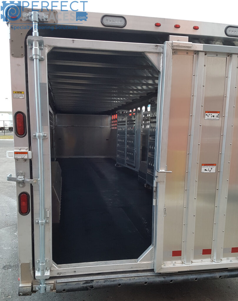 Common applications for VersaRUBBER® Equine & Livestock rubber mats include barn matting, horse stall matting, dairy housing matting, stock trailer matting, cow mats, barn aisle matting, stable matting, equine matting, cattle mats, hog and pig pen matting, horsebox matting, trailer ramp matting, equine stall mats, calf and pig pen matting, washing and tying bay matting, cow milking parlour matting, cow bedding base mats, chicken coop matting, cow shed matting, Quonset hut matting, or anywhere else that a durable, safe, and comfortable rubber flooring is required around the horse trailer, farm or ranch.