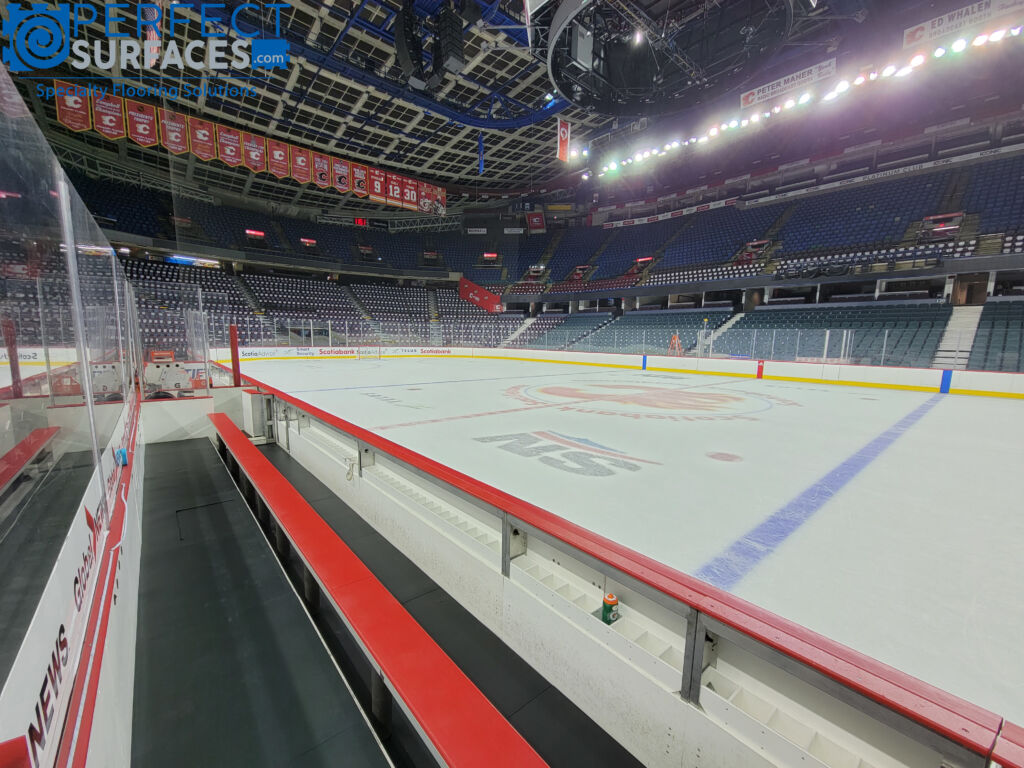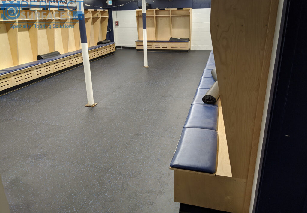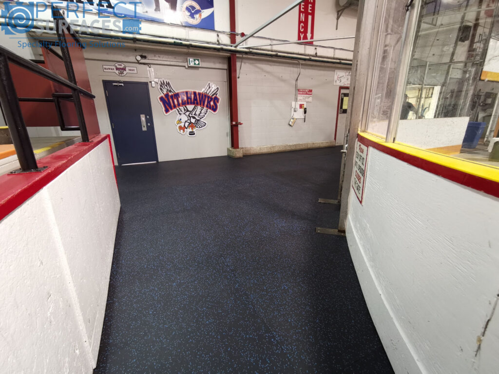 Ideal applications for VersaRUBBER® ICE rubber mats include hockey arena flooring, hockey locker room flooring, hockey benches, arena concourse flooring, arena lobby flooring, fitness and training room flooring, or anywhere else that a tough, slip-resistant, easy to clean rubber floor is required at the rink.