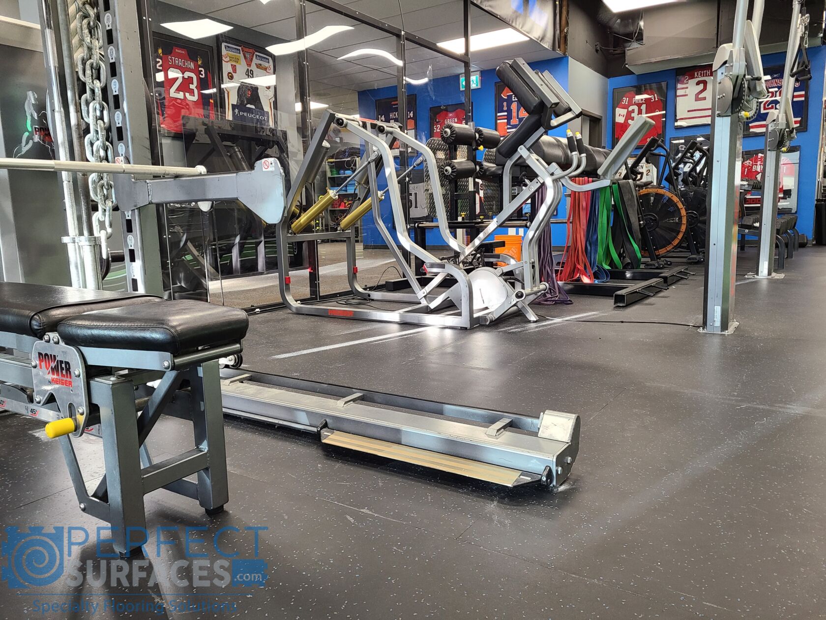 Ideal applications for VersaRUBBER® rubber gym mats include recreation centre flooring, weight room floors, commercial gym flooring, fitness flooring, exercise room flooring, home gym floors, or anywhere else that a resilient, slip-resistant rubber floor is required.