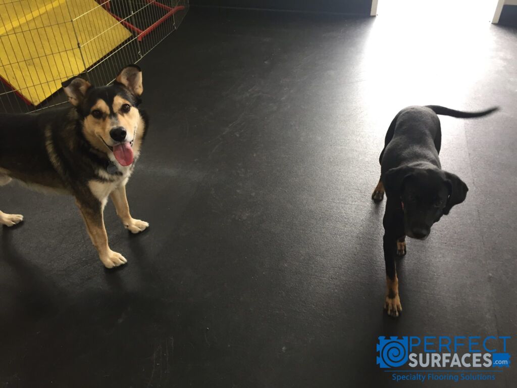 Pet-friendly VersaTREAD rubber animal flooring is resilient to paws and claws- providing adequate protection to both animals and the floor beneath! Available in a variety of thicknesses, stain-resistant VersaTREAD animal rubber surfacing offers sound dampening properties to reduce noise travel from barking, impact resistance to protect animals from injury caused by rough-play, traction for fake-outs and dog zoomies, and antifatigue cushioning for relaxing- altogether creating a safer and more comfortable animal care experience. Designed for durability, long-lasting VersaTREAD canine surfacing also aids in the protection of the floor beneath from damage caused by sharp nails and teeth.